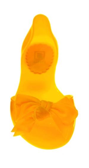 黃色蝴蝶結(jié)果凍鞋(GNC,328元)黃色的平跟蝴蝶結(jié)果凍鞋,一看就很柔軟舒適,鞋頭大大的蝴蝶結(jié)很搶眼也很精致。