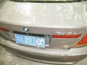 原車牌中的“1”被貼成“4”。