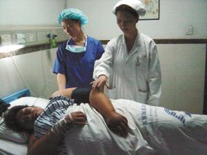 在醫(yī)院,比丈夫朱德全更緊張的是醫(yī)護(hù)人員。要扶李女士上下床,必須出動5個護(hù)士,用儀器檢查時需要她經(jīng)常翻身,醫(yī)生護(hù)士經(jīng)常累得大汗淋漓。張建華教授說,為李女士進(jìn)行剖宮產(chǎn)手術(shù)的時候,她的助手達(dá)到6個人,比平時多了一倍。