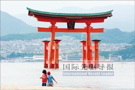 于廣島附近的嚴(yán)島神社是世界文化遺產(chǎn),其中聳立在海上的“大鳥居”被譽(yù)為日本三景之一。記者 任正來(lái)/攝