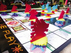 時(shí)代廣場外設(shè)置的“Shall we Play”巨型戶外斗獸棋可以滿足爸爸的童夢。