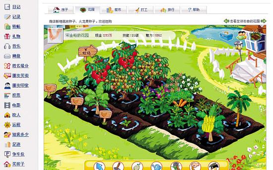 不過(guò),“偷菜”并非王儀涵、蔡赟、朱芳雨、鄭潔、鄒凱等體育明星們所專(zhuān)美,玩得更多的是城市里一堆年輕的白領(lǐng)們,或者緊張兮兮或者偷偷摸摸,玩著這個(gè)幾乎是今年上半年網(wǎng)絡(luò)上最火的游戲———每日上班的第一件事情,打開(kāi)電腦,上網(wǎng),收獲一下自家菜地里的雪蓮和農(nóng)場(chǎng)的牛奶,轉(zhuǎn)發(fā)幾個(gè)好玩的視頻給身邊的朋友,然后再寫(xiě)個(gè)真心話(huà)大冒險(xiǎn)暗爽一把……