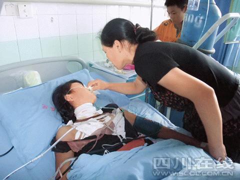 醫(yī)生說,芳芳被送入醫(yī)院時,頸部、背部以及胸口都有明顯的刀傷,性命危在旦夕。經(jīng)過將近一天的救治,芳芳目前傷情仍很嚴重,神志清醒,但說話仍很吃力,記者采訪時她只能點頭和搖頭表示!