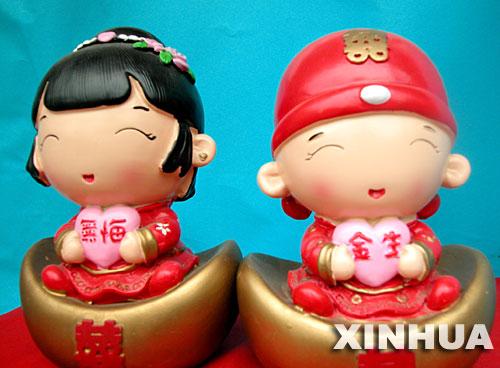 7月23日在棗莊一商店拍攝的一套情侶工藝品。