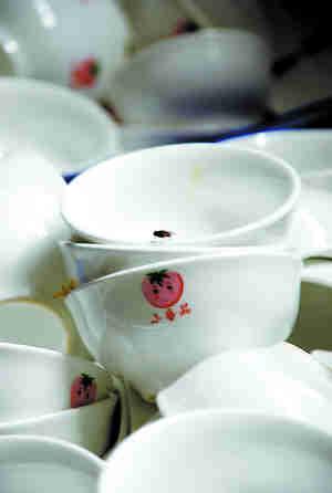 餐具消毒小作坊 蒼蠅圍著碗碟飛