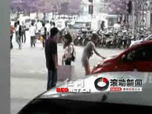 女子拿鑰匙在車前蓋上劃了兩下。 視頻截圖