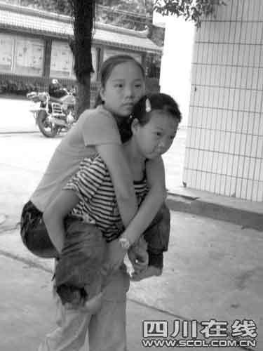 昨日上午第三節(jié)課下課鈴聲一響,初三一班的王琴就趕緊跑出教室,來(lái)到初三三班教室,走到姐姐王利面前:“姐,走,我背你上廁所!逼渌瑢W(xué)主動(dòng)騰開位置,只見瘦小的王琴蹲下半個(gè)身子,微胖的姐姐王利努力將雙手放在妹妹的雙肩上,妹妹用雙手托起姐姐的兩只大腿,然后甩開了大步。