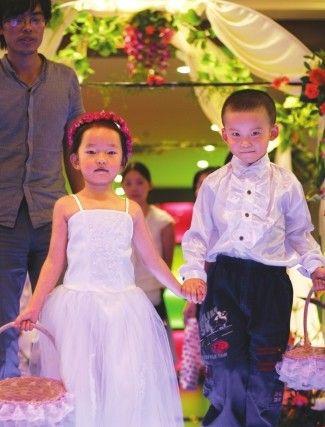花童的歷史由來已久,但過去一般都是新人親戚朋友的孩子來客串一下,而像小胖這樣的專職花童,大約是前年才開始在成都興起的!坝锌蓯鄣暮⒆訁⑴c其中,婚禮的氣氛會好很多。”成都藍戒指婚慶公司負責人唐榮說,目前活躍在成都婚慶市場中的專職花童,已經(jīng)超過百人。