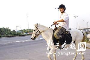 近日,常州北郊的馬路上發(fā)生了一件怪事:附近一家企業(yè)的一名年輕員工經(jīng)常騎著一匹高頭大馬上下班。對此,當?shù)亟谎簿块T昨日表示,目前沒有法律明令禁止馬匹不能上路,但為了安全起見,最好不要效仿。