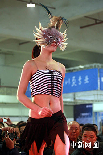 然鄭州室外地上還有厚厚的積雪沒有融化,但情趣內(nèi)衣展的T形臺(tái)上卻是活力四射。10多名女性情趣內(nèi)衣模特在人們的歡呼聲中閃亮登場。模特們身著各式生趣內(nèi)衣登臺(tái),閃亮燈光下,大膽地秀出迷人的內(nèi)衣和輕紗隱藏下的曼妙身材。