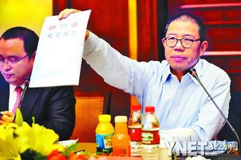 農夫山泉董事長鐘睒睒昨表示對復檢“不予認同”。圖為11月30日鐘睒睒展示有關部門的檢驗報告-供圖/新華