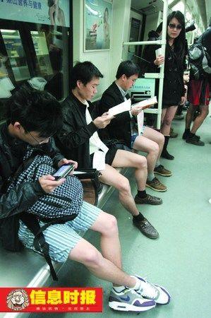 不過,記者了解到,大部分目擊此活動的乘客大都一頭霧水,不知道發(fā)生了什么事!皨寢,為什么這些姐姐都不穿褲子,不冷嗎?”赤崗站上來一名四歲小妹妹抬頭詢問著她的媽媽。她的母親告訴記者,“那么多人拿著相機(jī)和攝影機(jī)拍來拍去,應(yīng)該是在拍廣告吧?”