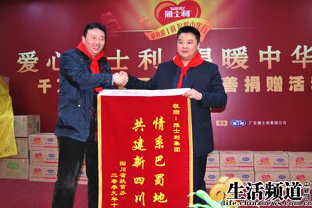 隨后,雅士利愛心小組來到“愛心雅士利•溫暖中華行”四川省捐贈儀式現(xiàn)場。儀式由蓬溪縣委常委、縣委組織部長張智勇主持,四川省扶貧辦社會扶貧處處長楊邦華、遂寧市扶貧辦主任戴見明、蓬溪縣人大常委會副主任吳岳寧、蓬溪縣人民政府副縣長廖理、楊文彬及廣安市廣安區(qū)商務局局長張自勇、廣安市廣安區(qū)扶貧辦副主任肖開武等地方領導和《中國扶貧》雜志社常務副社長郭金之等一行出席了現(xiàn)場!端拇ㄈ請蟆贰⑺鞂庪娨暸_、《遂寧日報》、蓬溪電視臺、《蓬溪周刊》等媒體記者一起見證捐贈過程。