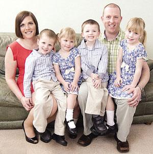 鮑登(左)和安迪(右2)與兩對(duì)龍鳳胎在一起