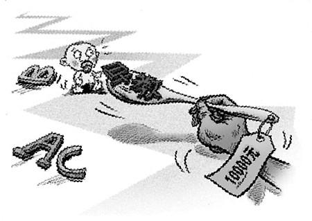“這樣的收費(fèi)不算貴,我們的老師都有一定的英語(yǔ)專業(yè)水平,可以雙語(yǔ)教學(xué)!边@位工作人員說,娛樂教室里的兒童玩具設(shè)施大多是國(guó)外進(jìn)口的,每天都進(jìn)行消毒,收費(fèi)標(biāo)準(zhǔn)自然比其它地方高一些。記者隨后走訪了省城其它幾家早教機(jī)構(gòu),發(fā)現(xiàn)每節(jié)課最低收費(fèi)也要100元,這還不包括資料費(fèi),如果家長(zhǎng)想要得到課堂用的光盤得教學(xué)資料,還要另外花錢購(gòu)買。