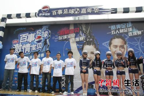 中新網(wǎng)5月17日電 近日,“百事足球,激情寶貝——走進(jìn)南非選拔賽”足球夢之隊6強(qiáng)選手再次前往足球嘉年華,給觀眾帶來視聽新感受。雖然天空下起綿綿細(xì)雨,但還是無法澆熄大家對活動的熱情,6強(qiáng)的球員們唱歌、跳舞、玩技巧樣樣精通,與足球?qū)氊?強(qiáng)配合也十分默契,最終通過足球知識的問答,決選出2位最佳球員贏得了與足球?qū)氊愐黄鹎巴戏堑耐ㄐ凶C。