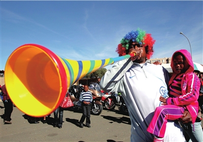 在本屆世界杯上,一種叫做“喔喔祖拉”的非洲傳統(tǒng)喇叭被全世界球迷所熟知,這個東西發(fā)出的類似于蜜蜂叫的響聲也引起了爭議。日前,“喔喔祖拉”已開始在淘寶網(wǎng)上熱賣。對于此物應(yīng)不應(yīng)該出現(xiàn)在本地綠茵場觀眾席上,北京國安的球迷反應(yīng)不一。