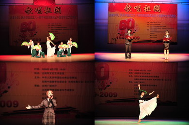 隨后,同學(xué)們圍繞“歌唱祖國,用歌聲為祖國生日獻(xiàn)禮”的主題,表演了豐富多彩的文藝節(jié)目。開場團(tuán)體舞蹈《春天的故事》造型優(yōu)美,歌曲《我和我的祖國》傾注了年輕海外學(xué)子對祖國母親的款款深情,歌聲嘹亮,獨(dú)舞《征途》英姿颯爽,獨(dú)唱《再見瀏陽河》優(yōu)美動(dòng)聽。此外,二胡演奏、詩歌朗誦、鋼琴獨(dú)奏、小提琴演奏和獨(dú)具特色的中國旗袍時(shí)裝秀等表演贏得了全場觀眾的喝彩。雖然這次參加演出的絕大多數(shù)是80后、90后的年輕學(xué)生,但每一個(gè)節(jié)目都經(jīng)過了精心準(zhǔn)備和反復(fù)排練,每一個(gè)表演都展現(xiàn)了同學(xué)們對祖國60華誕的喜悅和自豪。形式多樣、異彩紛呈的演出博得滿場觀眾一陣又一陣熱烈的掌聲和歡呼聲。