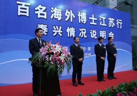 14日,江蘇省泰興市又一次迎來了“百名海外博士江蘇行”活動的海外博士們。中共泰興市委、市政府對遠道而來的海外博士們表示熱烈歡迎和誠摯的感謝。江蘇省人力資源和社會保障廳副廳長陳勵陽,中共泰興市委書記、市人大常委會主任張兆江,中共泰興市委副書記、市長高亞梓等領(lǐng)導(dǎo)出席了此次泰興說明會和項目洽談會。