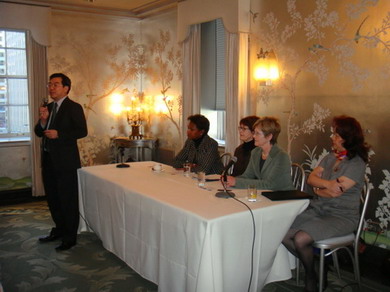 中新網12月11日電 據外交部網站消息,2009年12月10日,美國伊利諾伊大學芝加哥分校給來自中國和亞洲的近百名工商管理碩士學生組織了一場商業(yè)倫理課程研討會,中國駐芝加哥總領事黃屏攜夫人出席,并應邀在研討會前致辭。