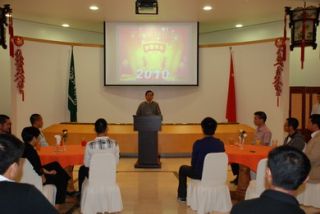 楊大使向各位留學(xué)生并通過(guò)他們向在國(guó)內(nèi)的親人致以誠(chéng)摯的新春?jiǎn)柡,介紹了國(guó)內(nèi)發(fā)展和中沙雙邊關(guān)系有關(guān)情況。楊大使表示,近年來(lái),中國(guó)經(jīng)濟(jì)保持平穩(wěn)快速增長(zhǎng),社會(huì)建設(shè)取得巨大成就,國(guó)際地位不斷提升。中國(guó)已成為世界第三大經(jīng)濟(jì)體,2009年外匯儲(chǔ)備繼續(xù)保持世界第一,外貿(mào)出口躍居世界第一,高速公路總里程數(shù)居全球第二。繼2008年奧運(yùn)會(huì)后,今年我們還將舉辦2010年上海世博會(huì),將再次向世界展示一個(gè)發(fā)展、開放、繁榮的中國(guó)。祖國(guó)的發(fā)展讓身居海外的中華兒女感到更加自豪和驕傲。