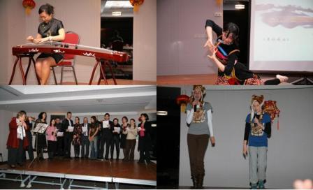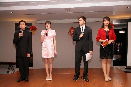 使館教育處王魯新參贊首先給到場的各位嘉賓和所有觀眾拜年并送出虎年的美好祝愿,并回顧了中國在過去一年金融危機時期經(jīng)濟持續(xù)發(fā)展的良好勢頭和在國際舞臺上的重要地位,同時展望了祖國更美好的2010年,即興用英語做了發(fā)言,在熱烈掌聲后開始了文藝演出。