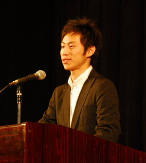 張鈞來自浙江,來日本約1年半。他告訴記者:“來日本前幾乎沒有學(xué)過日語,但來到日本后進步很快。很喜歡學(xué)校的學(xué)習(xí)氣氛,同學(xué)都很活躍,學(xué)習(xí)也很快樂。這次演講的題目是看了一部電影后想到的,當(dāng)然老師也給予了指導(dǎo)!闭勂饘W(xué)習(xí)經(jīng)驗他說:“來到日本后有空就學(xué)習(xí),且一定要敢說。如果僅會答題,不敢說話,那不能算是學(xué)好語言。我性格比較外向,所以敢說!