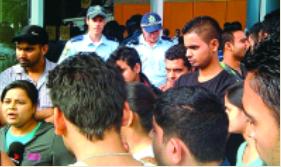 在學(xué)生們心情慌亂地填寫轉(zhuǎn)校表格時,警方和保安在現(xiàn)場嚴(yán)陣以待。這些表格由清盤人派發(fā),AUSTECH學(xué)院的管理層沒有到場回答學(xué)生們的疑問。