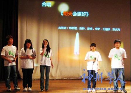 在中國駐韓大使館教育處的領(lǐng)導(dǎo)和在韓中國留學(xué)生聯(lián)合會的號召下,由建國大學(xué)學(xué)生會籌劃舉辦的“情系玉樹”,即建國大學(xué)留學(xué)生為玉樹災(zāi)區(qū)人民祈福募捐晚會,于4月28號在建國大學(xué)學(xué)生會館小禮堂莊嚴舉行。