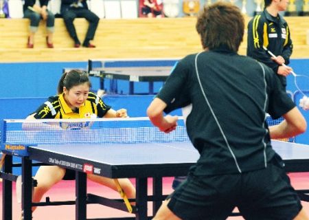 中新網(wǎng)5月7日電 據(jù)日本新華僑報網(wǎng)報道,為獲得即將在俄羅斯莫斯科即將開幕的第50屆世界乒乓球錦標(biāo)賽參賽權(quán),5月6日,日本選手在東京味之素國家訓(xùn)練中心,舉行了模擬假想敵的公開訓(xùn)練。其中,能說一口流利的漢語,深受中日人民喜愛的日本乒乓名將福原愛,則視羅馬尼亞一號主力丹妮拉·多德安為預(yù)選賽階段最大的對手。為此,她選擇了一名男陪練,專門模仿丹妮拉·多德安的打法。身高170cm的丹妮拉·多德安擅長削球,過去曾在比賽中與身高僅有156cm的福田愛交過手,福田愛的成績是3勝兩敗。