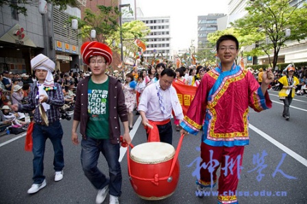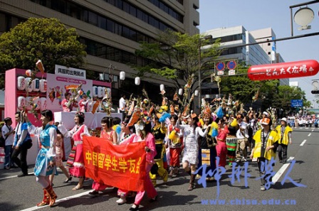 作為最能代表福岡博多的節(jié)日之一,也是西日本最有名的全民歡樂節(jié)之一,“博多打鼓節(jié)”起于平安時代,由一種稱為“松囃子”的民間藝術(shù)演變而來,最早的時候,它是向當?shù)仡I(lǐng)主祝賀新年的儀式,如今已經(jīng)演變成為福岡地區(qū)傳統(tǒng)的節(jié)日,市民組織各式各樣的慶;顒。2010年度的博多打鼓節(jié),中國留學(xué)生報名踴躍,積極參與,“中國留學(xué)生方隊”列于壓軸位置,在各個留學(xué)生隊伍中,“中國留學(xué)生方隊”參加人數(shù)最多,展示了中國傳統(tǒng)的少數(shù)民族服飾服飾和舞獅表演,亮點頻現(xiàn)。