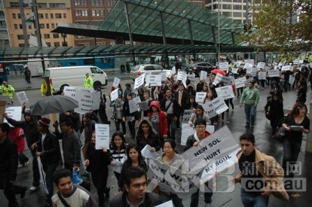 中新網(wǎng)6月7日電 據(jù)澳大利亞新快網(wǎng)報(bào)道,為抵制聯(lián)邦移民部推出的新的職業(yè)技術(shù)清單(SOL),以及抗議所受的不公平對(duì)待,近200名國際學(xué)生3日冒雨走上悉尼街頭,高舉標(biāo)語振臂疾呼。不過,一名來自私立學(xué)校的中國女生Annie表示,“我原以為人會(huì)更多的”,可謂一針見血。
