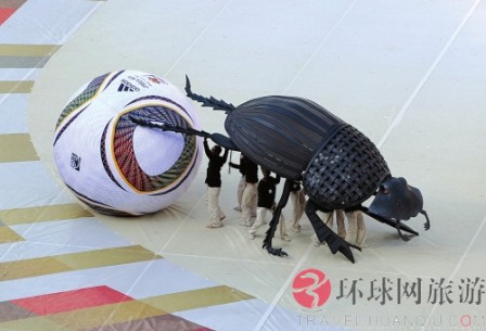 在南非世界杯的開幕式上,屎殼郎滾動著名為“普天同慶”的巨型足球,把整個開幕式推向最高潮。它的出現(xiàn),讓人們看到了人與自然的和諧。