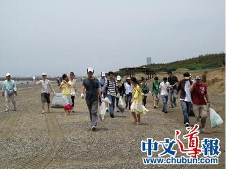 中新網(wǎng)6月17日電 據(jù)日本《中文導(dǎo)報(bào)》報(bào)道,2010年6月13日,按照預(yù)先計(jì)劃,日本千葉大學(xué)中國(guó)留學(xué)生學(xué)友會(huì)舉行了一次特殊的志愿活動(dòng)—— “千葉海港綠色環(huán);顒(dòng)”,為稻毛海濱公園的旅游區(qū)拾掇垃圾,清理環(huán)境衛(wèi)生。