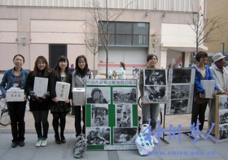 在札幌圈內(nèi),以北海道大學(xué)為中心的各個大學(xué)分別從4月22日開始在學(xué)校的公共場所進行了募捐活動。北海道地區(qū)中國學(xué)友會在北海道大學(xué)組織了近30多人的宣傳和募捐隊伍,先后進行了4天的募捐。隨后,北海道情報大學(xué)也組織了為期三天的全校募捐活動。6個地區(qū)的分會也根據(jù)具體情況分別在不同的時間里在各自的大學(xué)校園里進行了頗有影響的宣傳和募捐活動。