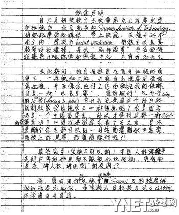 海明律師給本報(bào)傳來了翟田田親筆寫的聲明掃描件。翟在信中說, 檢方指控官在沒有證據(jù)的前提下,拒絕他上訴,還提出無理要求故意刁難,在保金已付的情況下仍拒絕他的保釋,稱這是一種“以言定罪”、“提前服刑”的逼供手段。