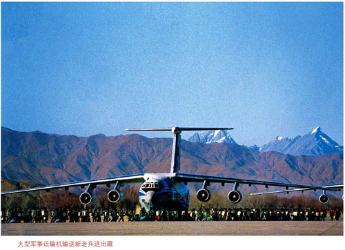 兵馬未動,裝備先行。1992年4月,根據(jù)總部安排部署,成都軍區(qū)首次使用伊爾-76運(yùn)輸機(jī)空運(yùn)進(jìn)出藏物資,從此年度空運(yùn)進(jìn)出藏物資正式啟動,空運(yùn)對象由人員向物資拓展,完成了由單純使用民航運(yùn)力、民用機(jī)場向軍民運(yùn)力合用、軍民機(jī)場并舉過渡,開創(chuàng)了全軍航空軍事運(yùn)輸人員、物資快速投送的先河。