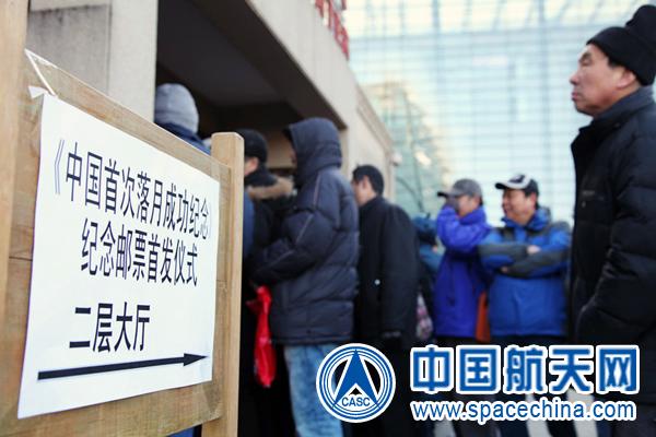時(shí)間跨入2014年的第一天,早上7點(diǎn),天剛蒙蒙亮,北京天文館還未開門,就已經(jīng)有上百人自發(fā)地在門前排起了長(zhǎng)隊(duì),這些集郵愛好者正等待著購買《中國(guó)首次落月成功紀(jì)念》郵票和首日封,并加蓋“月亮郵局”紀(jì)念郵戳,將“第一落”的喜悅分享到五湖四海。