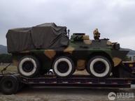第九屆中國國際航空航天博覽會(2012珠海航展)將于11月13日在廣東省珠海市金灣區(qū)三灶鎮(zhèn)隆重開幕。8日,環(huán)球網(wǎng)記者提前來到布展現(xiàn)場,發(fā)現(xiàn)一輛6×6輪式裝甲車已經(jīng)由拖車運抵,等待卸車布展。該裝甲車的底盤與92步戰(zhàn)車基本相同,車體后上部高高隆起并蒙有帆布,加裝了很多設(shè)備,從參加珠海航展的性質(zhì)預(yù)測,可能是新型外銷型號;車體后部沒有發(fā)現(xiàn)螺旋推進裝置,用途應(yīng)該限于陸地。(來源:環(huán)球網(wǎng))