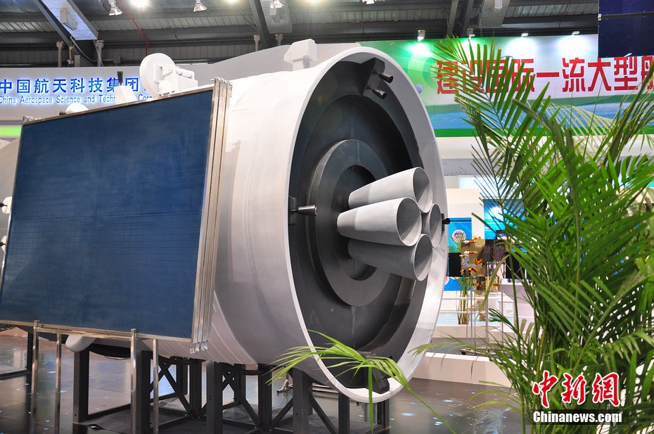 天宮一號空間站與神九飛船對接模型。陳海峰 攝