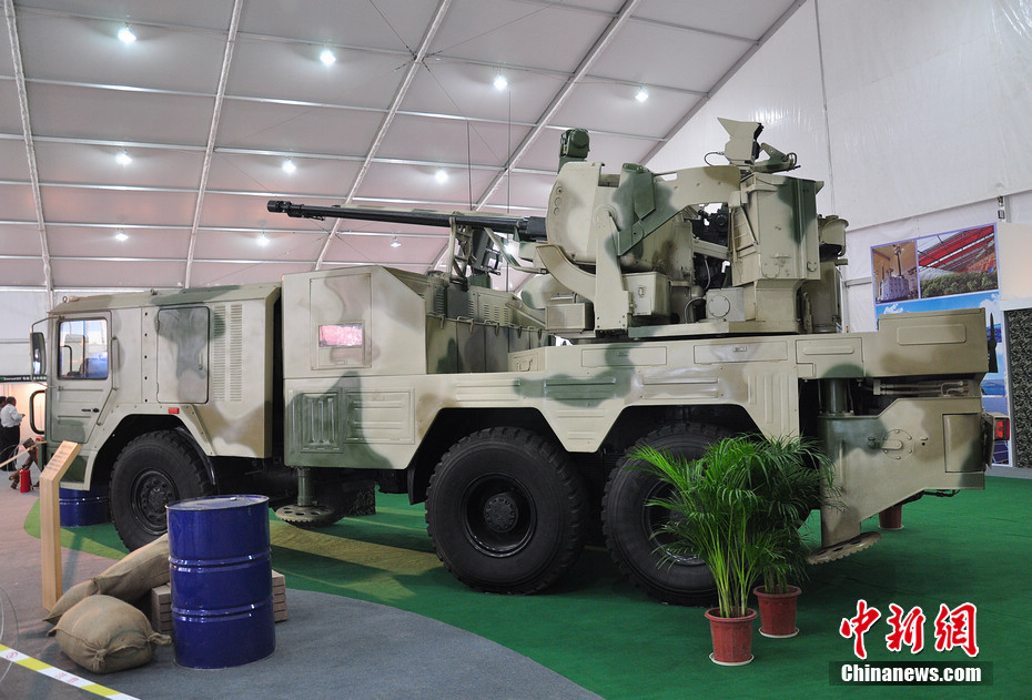 國(guó)產(chǎn)CS/SA1型車載35毫米高炮亮相珠海航展。陳海峰 攝