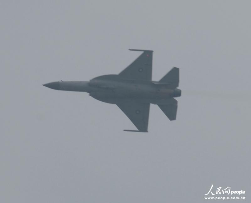 人民網(wǎng)珠海11月13日電 (記者 閆嘉琪)12日,在第九屆中國國際航空航天博覽會現(xiàn)場,巴基斯坦空軍“梟龍”戰(zhàn)機(jī)升空展示優(yōu)秀機(jī)動性能!皸n龍”戰(zhàn)機(jī)在飛行表演中展示了快速爬升、空中連續(xù)橫滾等特技動作。巴基斯坦空軍“梟龍”戰(zhàn)機(jī)來自中國,此次“梟龍”回“娘家”參加珠海航空飛行表演,引起廣泛關(guān)注。