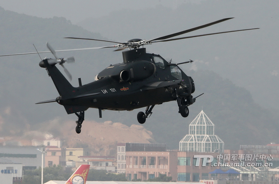 11月13日,我國自主研制生產(chǎn)的武直-10武裝直升機(jī)亮相在珠海舉行的第九屆中國國際航空航天博覽會(huì),在飛行表演中展示了這款直升機(jī)的優(yōu)良性能。圖為武直-10作360度旋轉(zhuǎn)。記者喬天富攝
