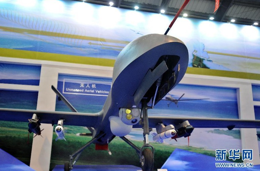 這是珠海航展上展出的彩虹4(CH-4)無人機系統(tǒng)(11月14日攝)。新華社記者 劉大偉 攝