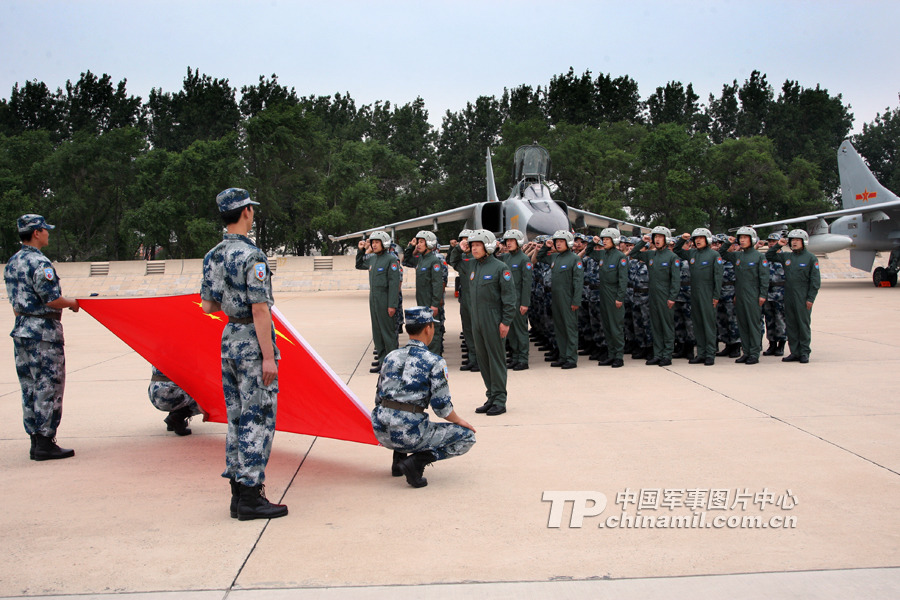 7月27日,參加中俄聯(lián)演的空軍戰(zhàn)斗群官兵出征前在國(guó)旗前集體宣誓,立志圓滿完成聯(lián)演任務(wù),為祖國(guó)爭(zhēng)光。曹占禮攝