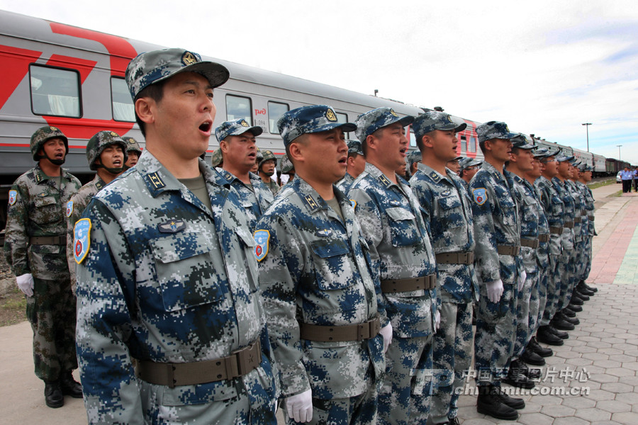 官兵意氣風發(fā)、斗志昂揚準備登上俄方專列。 曹占禮 攝