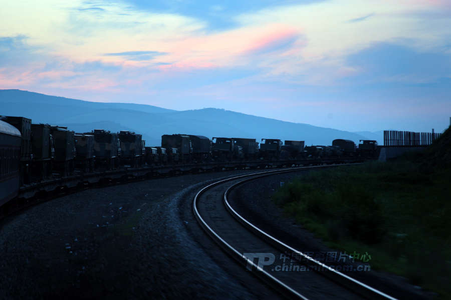 余暉下行進(jìn)的地轉(zhuǎn)專列。 曹占禮 攝