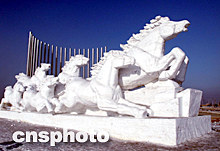 大型雪雕奔馬六駿圖在長春落成