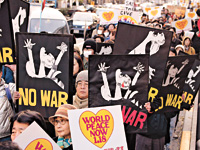 日本星期六掀起了全球周末反戰(zhàn)浪潮的第一波。五千多人星期六在首都東京集會(huì)﹐人數(shù)在日本全國(guó)當(dāng)天舉行的十來(lái)個(gè)抗議集會(huì)中最多。
