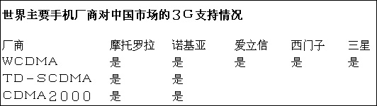 此外,中國市場巨大,潛力更是驚人,目前中國是GSM第一大國,每年凈增6000萬用戶。就像拋開了中國的12億人口談世界人口狀況一樣,憑借除中國以外的手機(jī)市場現(xiàn)狀來預(yù)測未來3G趨勢顯然是不權(quán)威的。決定未來3G命運(yùn)的主戰(zhàn)場可能就是中國。